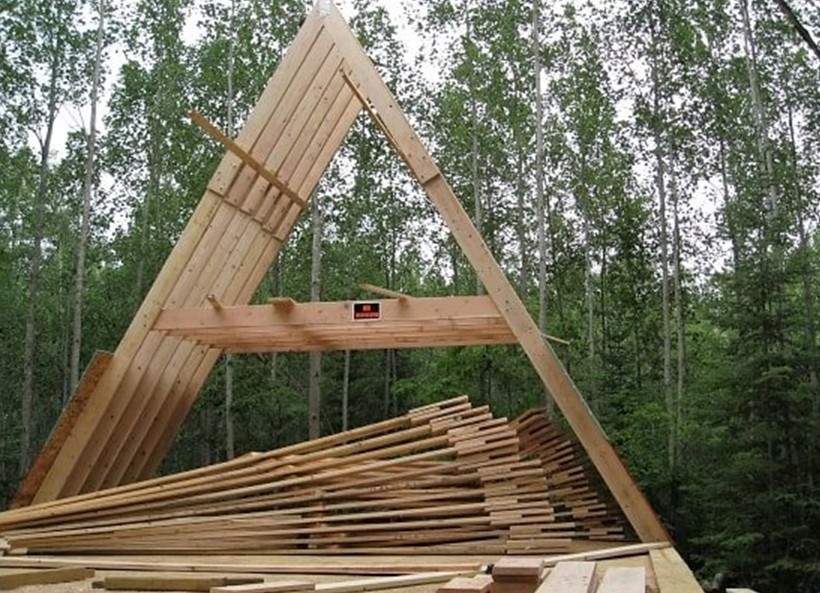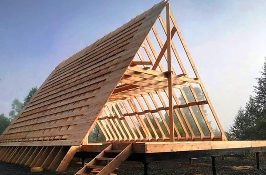 Конструкция А-образной постройки очень простая. Мы просто убираем вертикальные стены и заменяем их крышей до самой земли. Не случайно родиной шалашных зданий стали морские районы. Там остро стоит проблемы защиты стеновых конструкций от агрессивной соляной влаги. Сплошная крыша отлично справляется с этой задачей.