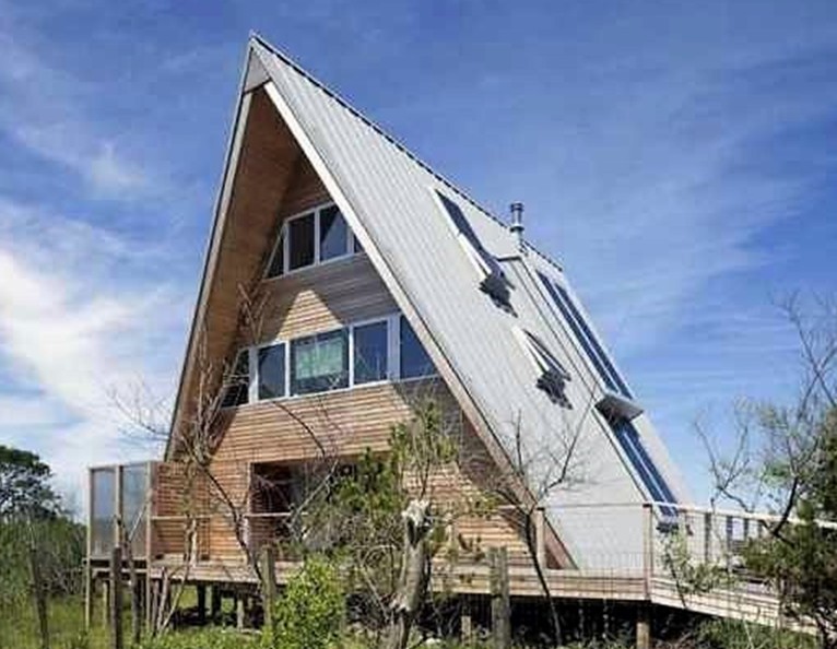 На а образном доме есть много места на крыше. Его можно использовать под солнечные батарее или водяные гелиоколлекторы.